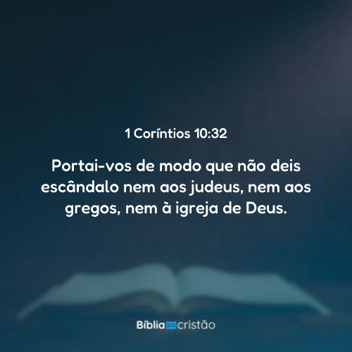 Portai-vos de modo que não deis escândalo nem aos judeus, nem aos gregos, nem à igreja de Deus.