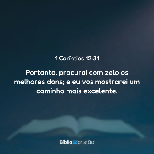 Mas procurai com zelo os maiores dons. Ademais, eu vos mostrarei um caminho sobremodo excelente.