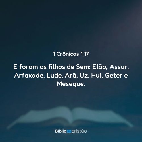 17 E foram os filhos de Sem: Elão, Assur, Arfaxade, Lude, Arã, Uz, Hul, Geter e Meseque.