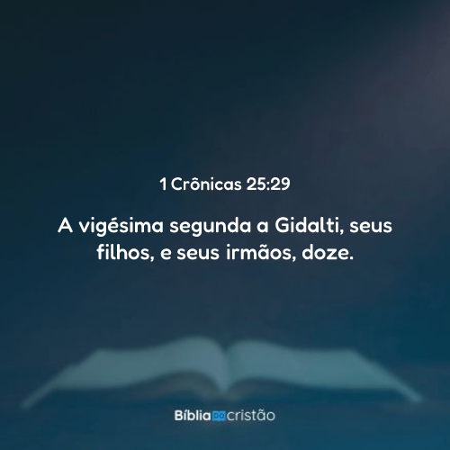 29 A vigésima segunda a Gidalti, seus filhos, e seus irmãos, doze.