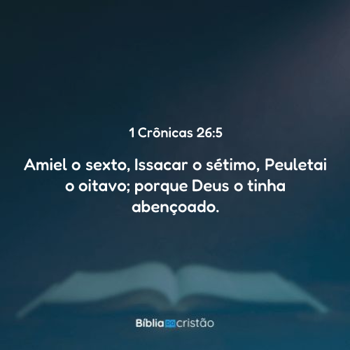 Amiel, o sexto, Issacar, o sétimo, e Peuletai, o oitavo, porquanto Deus havia derramado suas bênçãos sobre Obede-Edom.