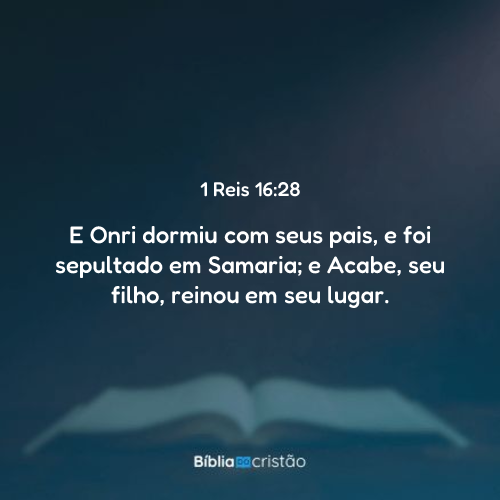 Onri dormiu com seus pais, e foi sepultado em Samária. E Acabe, seu filho, reinou em seu ugar.