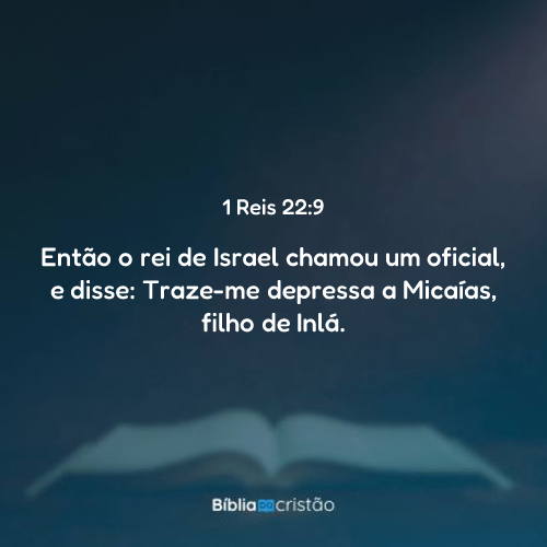 Então o rei de Israel chamou um dos seus oficiais e disse: "Traga Micaías, filho de Inlá, imediatamente".