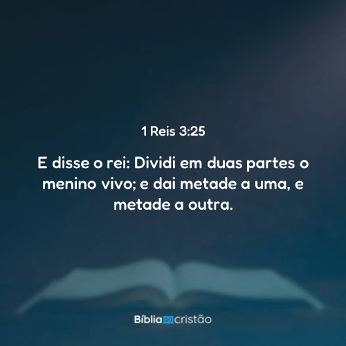 25 E disse o rei: Dividi em duas partes o menino vivo; e dai metade a uma, e metade a outra.