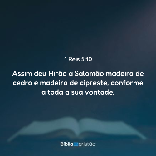 Assim dava Hirão a Salomão madeira de cedro e madeira de cipreste, conforme todo o seu desejo.
