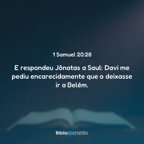 28 E respondeu Jônatas a Saul: Davi me pediu encarecidamente que o deixasse ir a Belém.