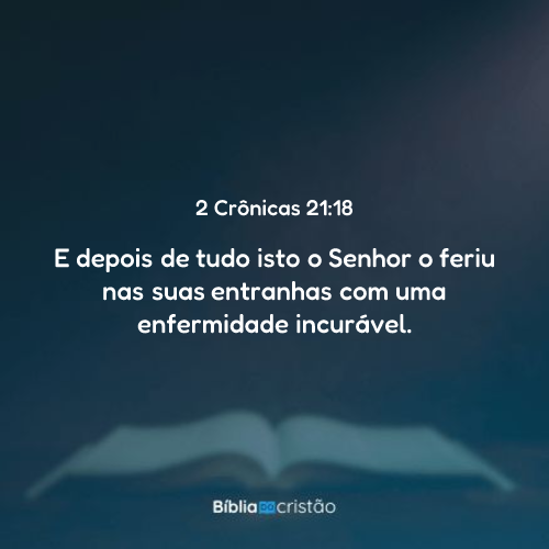 Depois de tudo isto, o SENHOR o feriu nas suas entranhas com enfermidade incurável.