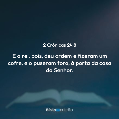 8 E o rei, pois, deu ordem e fizeram um cofre, e o puseram fora, à porta da casa do Senhor.