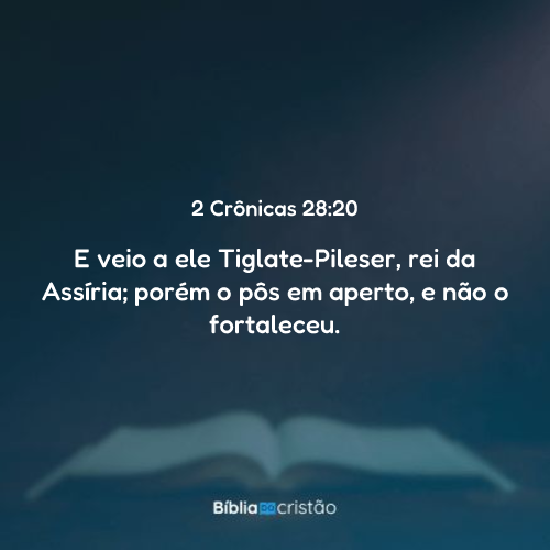 Veio a ele Tiglate-Pileser, rei da Assíria; porém o pôs em aperto, em vez de fortalecê-lo.