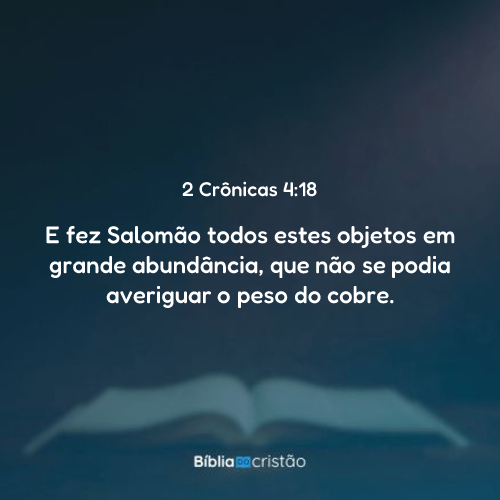 18 E fez Salomão todos estes objetos em grande abundância, que não se podia averiguar o peso do cobre.