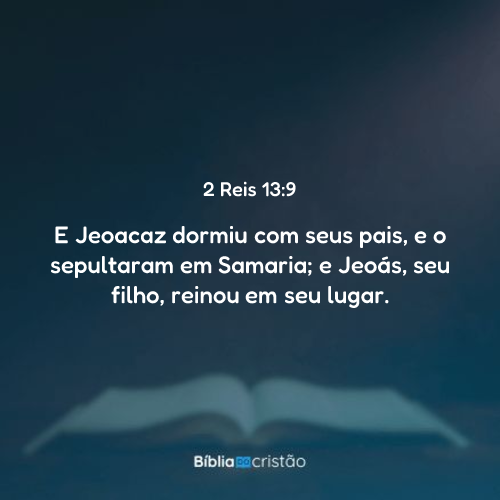 9 E Jeoacaz dormiu com seus pais, e o sepultaram em Samaria; e Jeoás, seu filho, reinou em seu lugar.