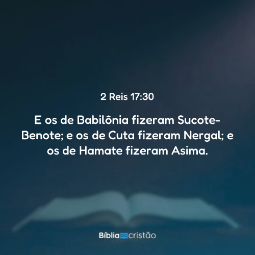 Os da Babilônia adoravam as imagens do deus Sucote-Benote. Os de Cuta adoravam o deus Nergal. Os de Hamate adoravam o deus Asima.