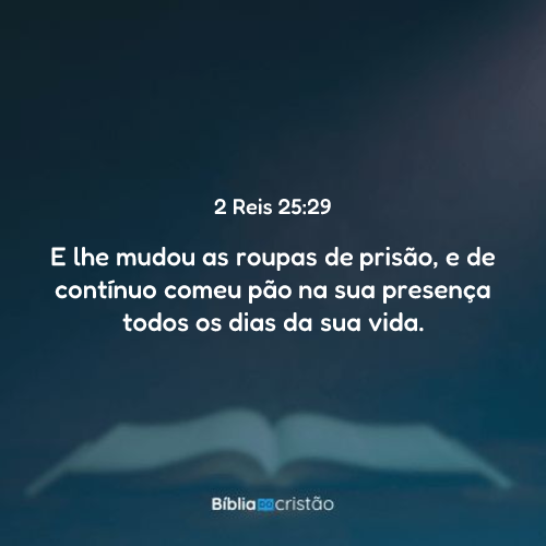 E lhe fez mudar as vestes da sua prisão; e passou a comer pão sempre na presença do rei, todos os dias da sua vida.