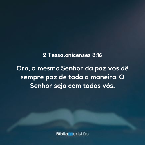 Ora, o Senhor da paz, Ele pessoalmente, vos dê continuamente a paz em todas as circunstâncias. O Senhor seja com todos vós!