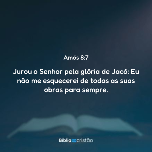 7 Jurou o Senhor pela glória de Jacó: Eu não me esquecerei de todas as suas obras para sempre.