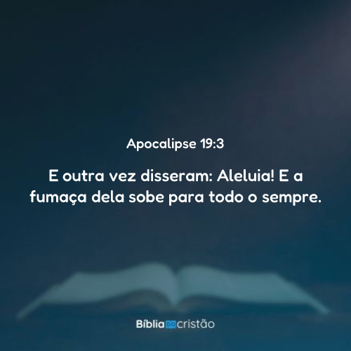 E outra vez disseram: Aleluia. E a fumaça dela sobe pelos séculos dos séculos.