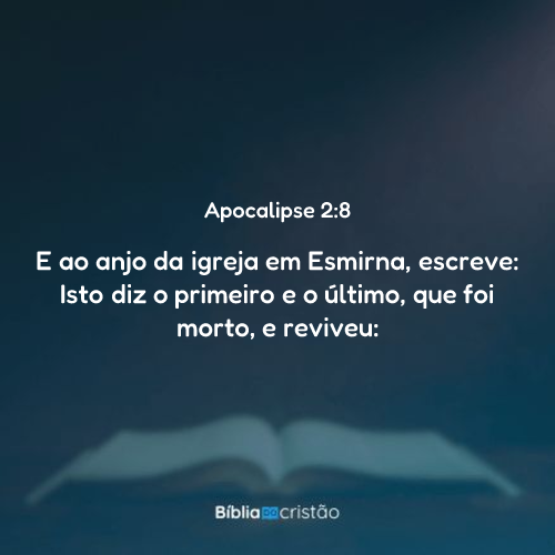 Ao anjo da igreja em Esmirna escreva: Estas são as palavras daquele que é o Primeiro e o Último, que morreu e tornou a viver.