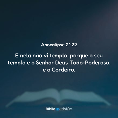 E nela não vi templo, porque o seu templo é o Senhor Deus Todo-Poderoso, e o Cordeiro.