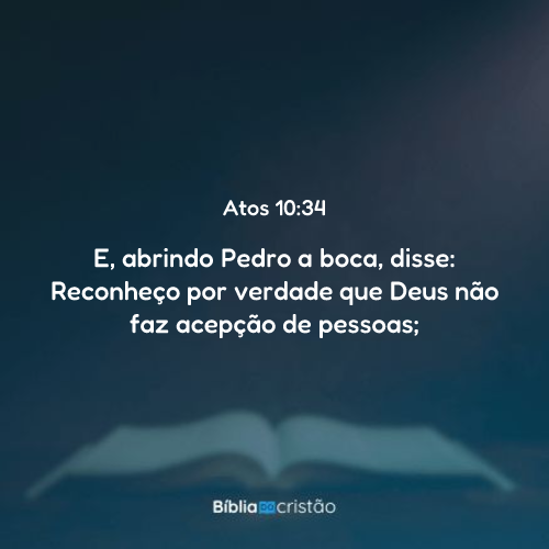 Então Pedro, tomando a palavra, disse: Na verdade reconheço que Deus não faz acepção de pessoas;
