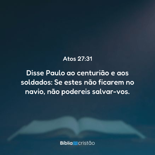 Disse Paulo ao centurião e aos soldados: Se estes não ficarem no navio, não podereis salvar-vos.