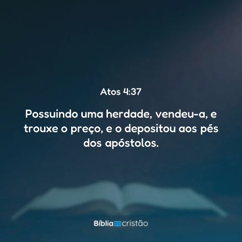 Possuindo uma herdade, vendeu-a, e trouxe o preço, e o depositou aos pés dos apóstolos.
