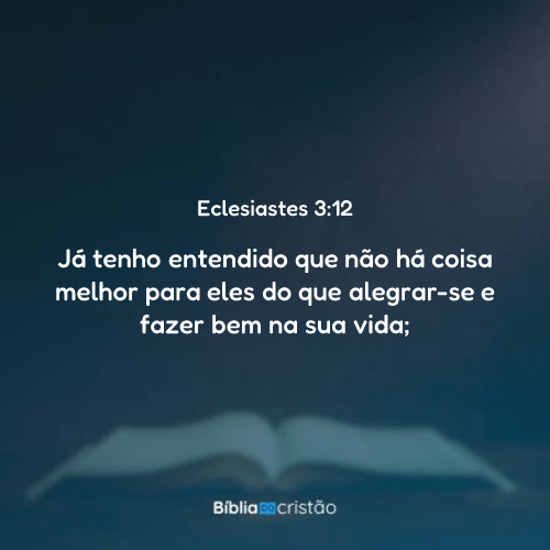 12 Já tenho entendido que não há coisa melhor para eles do que alegrar-se e fazer bem na sua vida;