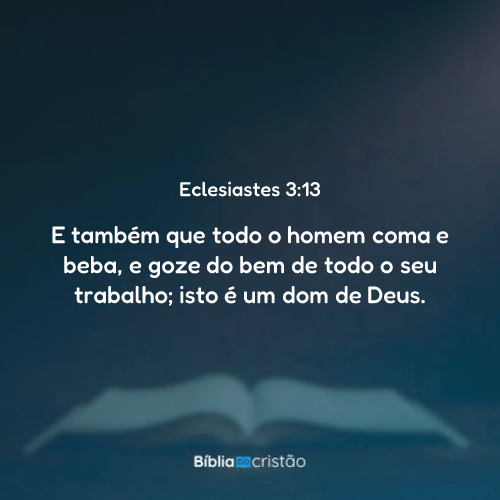 13 E também que todo o homem coma e beba, e goze do bem de todo o seu trabalho; isto é um dom de Deus.