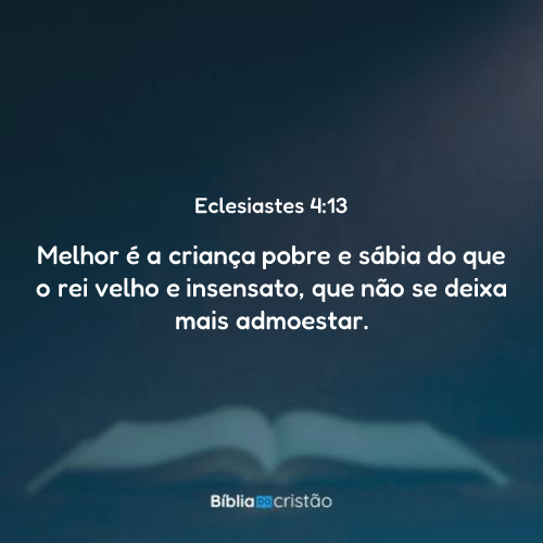 Melhor é a criança pobre e sábia do que o rei velho e insensato, que não se deixa mais admoestar.