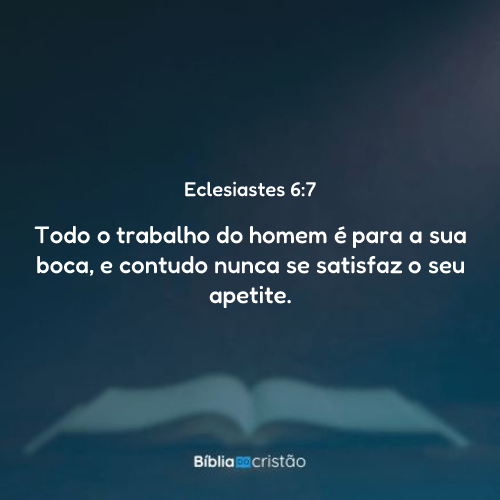 Todo trabalho do homem é para a sua boca, e, contudo, nunca se satisfaz a sua cobiça.