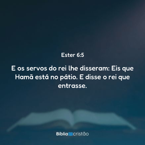 E os servos do rei lhe responderam: Eis que Hamã está esperando no pátio. E disse o rei que entrasse.