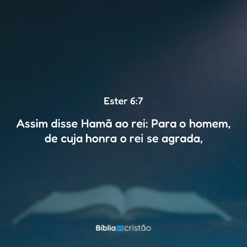6 E, entrando Hamã, o rei lhe disse: Que se fará ao homem de cuja honra o rei se agrada? Então Hamã disse no seu coração: De quem se agradaria o rei para lhe fazer honra mais do que a mim?