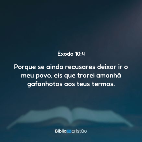 Porque se ainda recusares deixar ir o meu povo, eis que trarei amanhã gafanhotos aos teus termos.