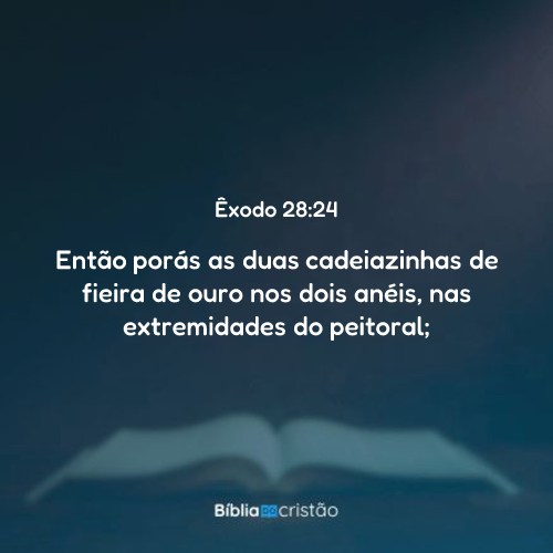 Então porás as duas cadeiazinhas de fieira de ouro nos dois anéis, nas extremidades do peitoral;