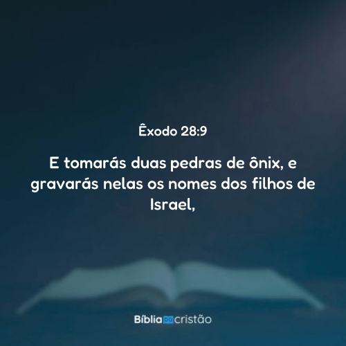 E tomarás duas pedras de ônix, e gravarás nelas os nomes dos filhos de Israel,