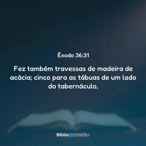 Fizeram também travessões de madeira de acácia: cinco travessões para as tábuas de um lado do tabernáculo,