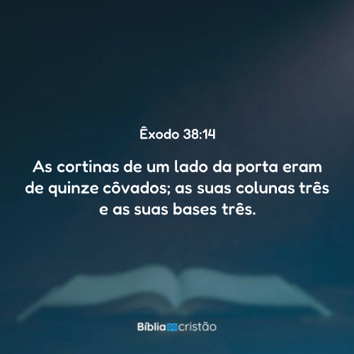 As cortinas de um lado da porta eram de quinze côvados; as suas colunas três e as suas bases três.
