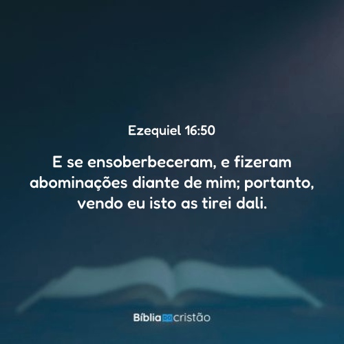 50 E se ensoberbeceram, e fizeram abominações diante de mim; portanto, vendo eu isto as tirei dali.