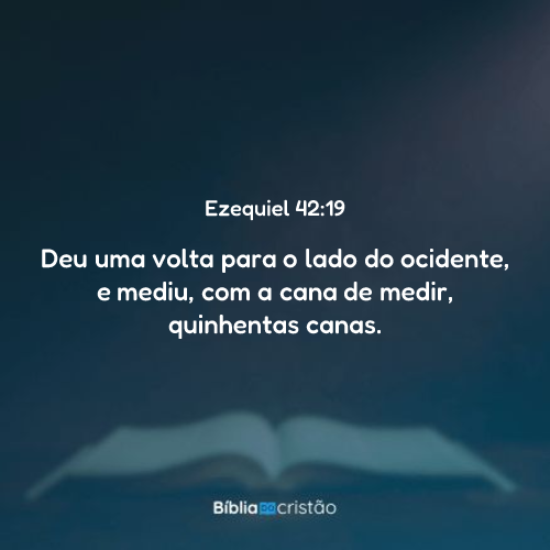 Depois o homem dirigiu-se para o lado do Ocidente, a Oeste e o mediu também; totalizou quinhentas canas, isto é, mil e quinhentos metros.