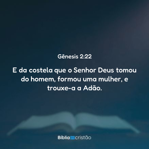 E da costela que o Senhor Deus tomou do homem, formou uma mulher, e trouxe-a a Adão.