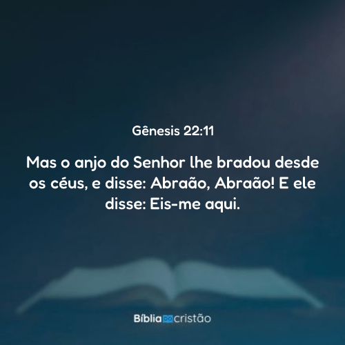 11 Mas o anjo do Senhor lhe bradou desde os céus, e disse: Abraão, Abraão! E ele disse: Eis-me aqui.