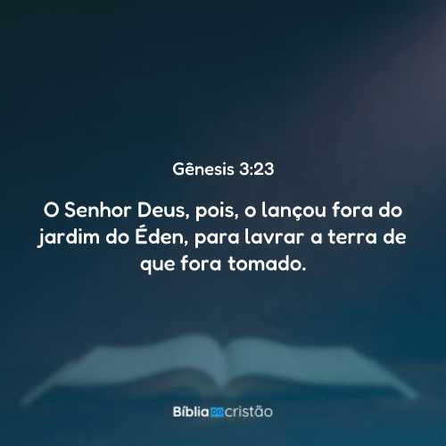 O Senhor Deus, pois, o lançou fora do jardim do Éden, para lavrar a terra de que fora tomado.