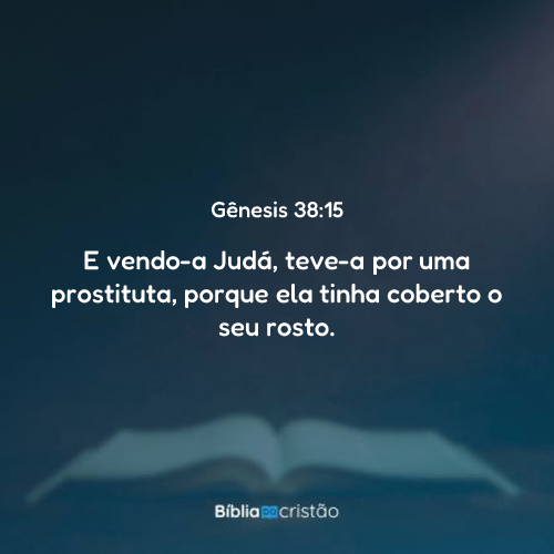 E, vendo-a Judá, teve-a por uma prostituta; porque ela havia coberto o seu rosto.