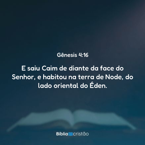 Então Caim saiu da presença do SENHOR e foi morar na região de Node, que fica a leste do Éden.