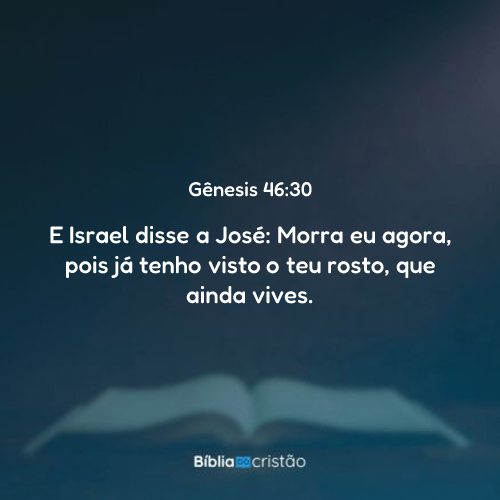 E Israel disse a José: Morra eu agora, já que tenho visto o teu rosto, pois que ainda vives.