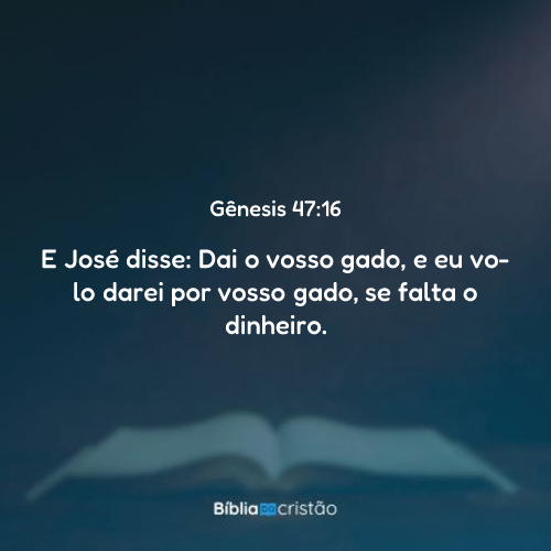 Respondeu José: Trazei o vosso gado, e vo-lo darei por vosso gado, se falta o dinheiro.