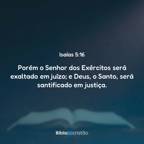 16 Porém o Senhor dos Exércitos será exaltado em juízo; e Deus, o Santo, será santificado em justiça.