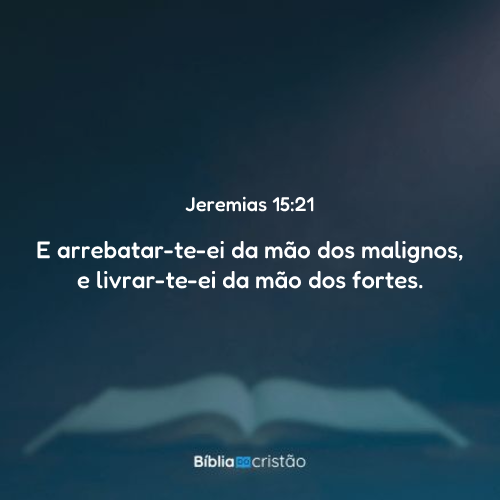 E arrebatar-te-ei da mão dos malignos, e livrar-te-ei da mão dos fortes.