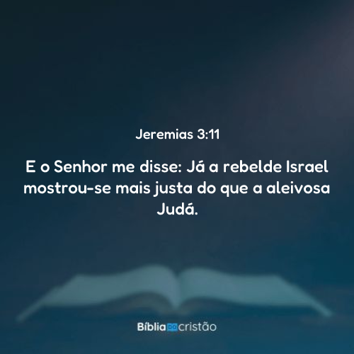 11 E o Senhor me disse: Já a rebelde Israel mostrou-se mais justa do que a aleivosa Judá.