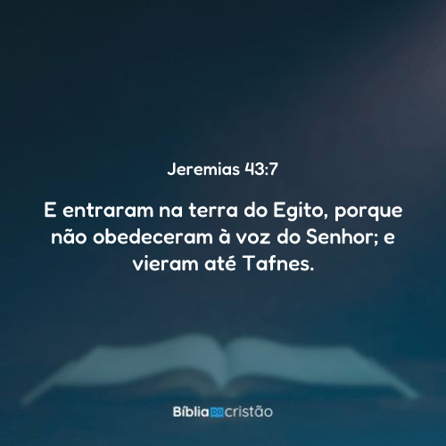 Eles partiram para o Egito, desobedecendo ao SENHOR, e chegaram à cidade de Tafnes.
