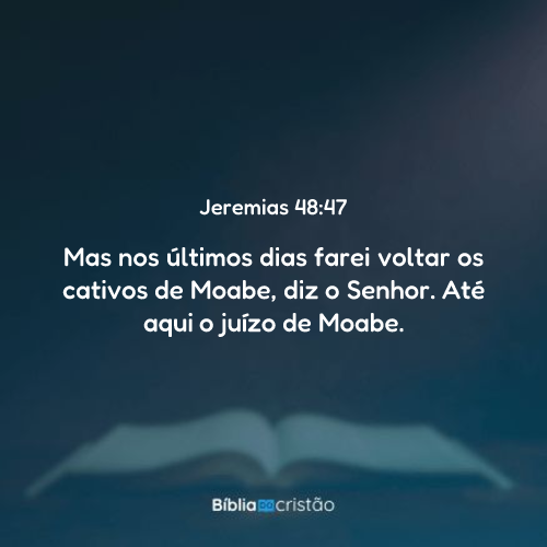 Contudo, mudarei a sorte de Moabe, nos últimos dias”, diz o Senhor. Até aqui o juízo contra Moabe.